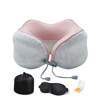 Comfortable Car Headrest Memory Foam Neck Pillow U-Shape Magnetic Cooling with Eye Mask and Earplugs Portable for Office Use