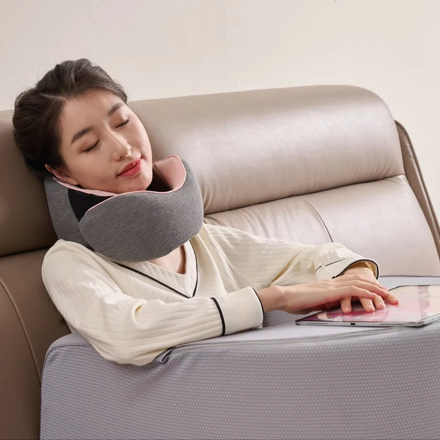 Comfortable Car Headrest Memory Foam Neck Pillow U-Shape Magnetic Cooling with Eye Mask and Earplugs Portable for Office Use