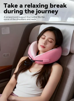Comfortable Car Headrest Memory Foam Neck Pillow U-Shape Magnetic Cooling with Eye Mask and Earplugs Portable for Office Use